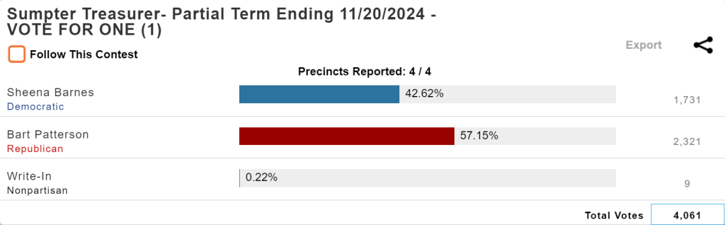 If not, vote for Republican candidate Bart Patterson for Sumpter Township Treasurer.